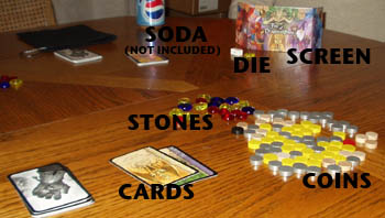 The Game PlayBefore the game starts, each player is given 8 fairy gold, 2 common gold, 5 silver, 4 random dragonstones, and a scoring die, which is set to zero. Then, the first round of play begins. The gameplay of Fist of Dragonstones centers around the character cards. There are 33 different ones, but the 8 "standard" characters form the core of the game. Each of them has a special power that affects either the auctions or the three markers used in the game (coins, dragonstones, and victory points). The standard characters are: