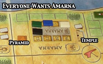 Good Interaction of Gameplay Systems: The fact that money is used for so many different things adds considerably to the strategic gameplay. You have to think not just about bidding on provinces, but also how much money you need for purchasing items and for sacrificing to Amun-Re. Finally, the inclusion of minor resource management systems adds an important possibility for cash inflow.