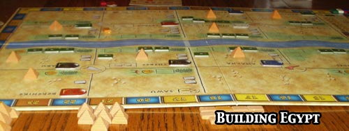 Multiple Paths to Victory: The variant victory conditions allow for multiple paths to victory. This is most obvious when you decide whether to even out your pyramids to get sets or to build up to have the best province on your side of the Nile. There are also multiple paths that can be taken in earning money from provinces (farmers, use of bonus cards, camel routes, etc).
