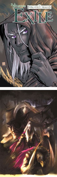 Forgotten Realms: Exile #1 and Forgotten Realms: Exile #2 are the first two comics in Devil's Due Publishing's adaptation of the second book of R.A. Salvatore's Drizztian origins trilogy. The entire adaptation is slated for three isues, with the final one due out this month.