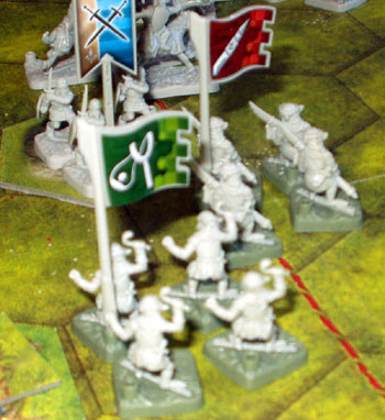 There are also ten banners, so that these five complete units can be used on either side of the BattleLore wars.